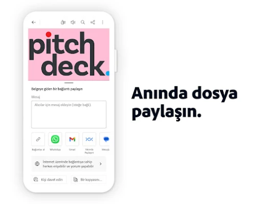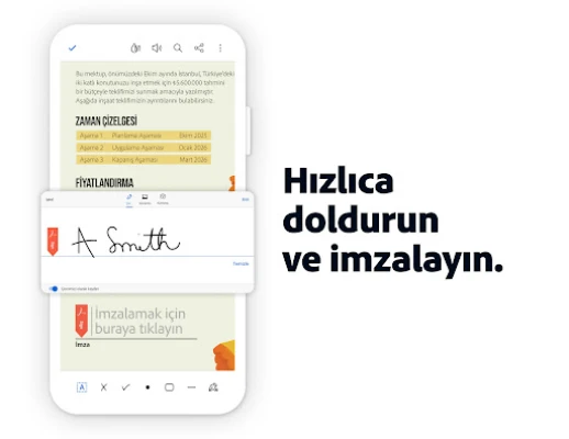 Temel ihtiyaçlarınız için ücretsiz sunulan araçlar da iş akışınızı hızlandırır. Adobe Fill & Sign ile formları anında doldurun, dijital imzanızı ekleyin ve hızla gönderin. Liquid Mode, PDF okuma deneyiminizi yeniden tanımlar; metin boyutunu ve satır aralığını cihaz ekranınıza göre ayarlayarak en iyi görünümü sunar. Optik Karakter Tanıma (OCR) teknolojisi sayesinde taranmış belgelerinizi aranabilir ve düzenlenebilir hale getirin. Açıklama ekleme, yapışkan notlar ve vurgulama araçlarıyla belgeler üzerinde iş birliği yapın; dosyalarınızı paylaşarak diğerlerinden kolayca yorum alın, etkinlik bildirimleriyle güncel kalın ve @bahsetme etiketiyle ekip üyelerinizi anında dahil edin.