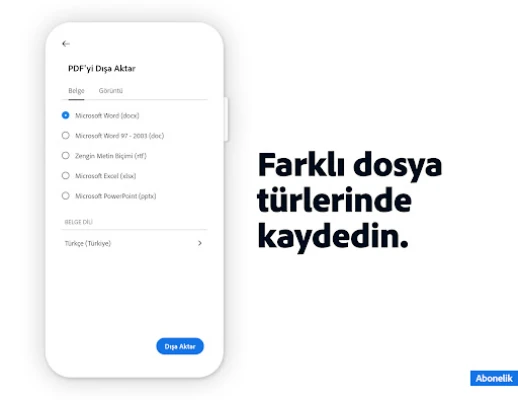 Aboneliğinizle, PDF'ler üzerinde kusursuz bir düzenleme deneyimi yaşayın. Metin ve görselleri doğrudan belgelerinizde değiştirin, yazım hatalarını düzeltin, paragrafları kolayca ekleyin, çıkarın veya görselleri dilediğiniz gibi döndürün. Acrobat Reader'ın güçlü dönüştürücü özelliği sayesinde, birden fazla dosyayı tek bir PDF'te birleştirin, web sayfalarını PDF'e çevirin ve PDF'lerinizi MS Word, Excel veya PowerPoint gibi popüler formatlara sorunsuzca aktarın. Google Drive'daki belgelerinizi de abonelikle yaratabilir, düzenleyebilir ve dışa aktarabilirsiniz. Üstelik, belgelerinizi sıkıştırarak yerden tasarruf edin ve parola korumasıyla gizliliğini sağlayın.