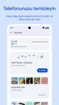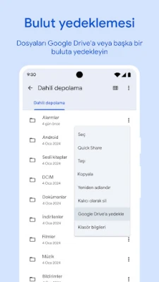 Cihazınızdaki depolama alanını tam kontrol altına alın. Google Files, dahili hafızanızda, SD kartınızda ve USB sürücünüzde ne kadar boş alan kaldığını net bir şekilde görmenizi sağlar. Sohbet uygulamalarındaki eski görselleri, gereksiz tekrarlayan dosyaları veya birikmiş önbelleği akıllıca tespit ederek, tek dokunuşla gözle görülür bir yer açın. En değerli verilerinizi ve anılarınızı Google Drive'a veya SD kartınıza güvenle yedekleyerek cihazınızda daha fazla boşluk yaratın; dilerseniz diğer bulut depolama servisleriyle de kolayca etkileşime geçebilirsiniz. Hassas dosyalarınız için cihazınızın kilidinden bağımsız, ekstra bir PIN veya desen kilidi oluşturarak kişisel verilerinizin gizliliğini en üst düzeyde koruyun.