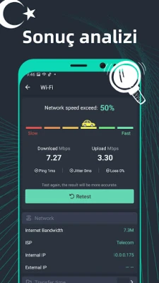 İnternet bağlantınızın yavaşlığından şikayetçi misiniz? Oyunlarınız kesintiye uğruyor, videolarınız sürekli takılıyor veya söz verilen bant genişliğine ulaşamadığınızı mı düşünüyorsunuz? SpeedTest Master, 2G'den 5G'ye, DSL'den ADSL'e kadar tüm ağ türlerinde bağlantı performansınızı anında ve detaylı bir şekilde değerlendirmenizi sağlayan kapsamlı bir araçtır. İndirme ve yükleme hızlarınızı, aynı zamanda kritik ping gecikmesini hassas bir şekilde ölçerek internet deneyiminizin gerçek potansiyelini gözler önüne serer. Basit tek dokunuşla gerçekleştireceğiniz testlerle ağınızın kararlılığını kolayca anlayın.