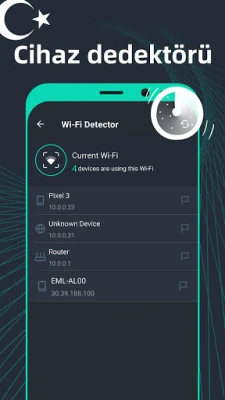 Wi-Fi bağlantınızın gücünü ve verimliliğini mi merak ediyorsunuz? SpeedTest Master'ın gelişmiş Wi-Fi analizörü, evinizdeki veya ofisinizdeki en güçlü sinyal noktalarını keşfetmenize yardımcı olur. Ayrıca, ağınıza izinsiz bağlanan cihazları tespit ederek Wi-Fi güvenliğinizi sağlamanıza olanak tanır. Kanalları analiz ederek yönlendiriciniz için daha az yoğun bir frekans bulabilir, böylece kablosuz ağınızın performansını maksimize edebilirsiniz. Çevrenizdeki kablosuz sinyaller hakkında derinlemesine bilgilerle Wi-Fi deneyiminizi bir üst seviyeye taşıyın.